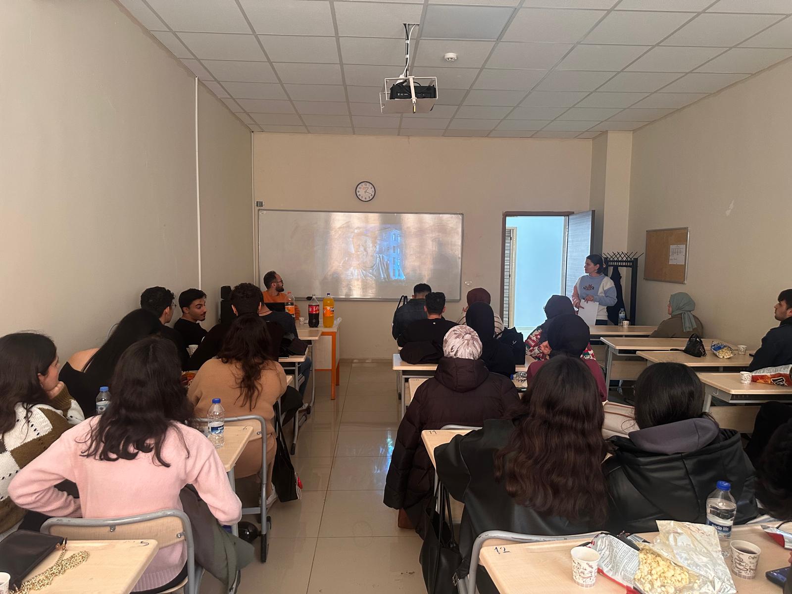 Sosyal etkinlikler kapsamında, İngilizce hazırlık programları öğrencilerine, Öğr. Gör. Hüseyin Koç rehberliğinde, sinema etkinliği gerçekleştirilmiştir. İngilizce film izleme ve film hakkındaki görüşlerini İngilizce ifade etme fırsatı sunan bu etkinlik, ikramlar eşliğinde öğrencilerimizin sosyalleşmesine imkan sunmuştur.