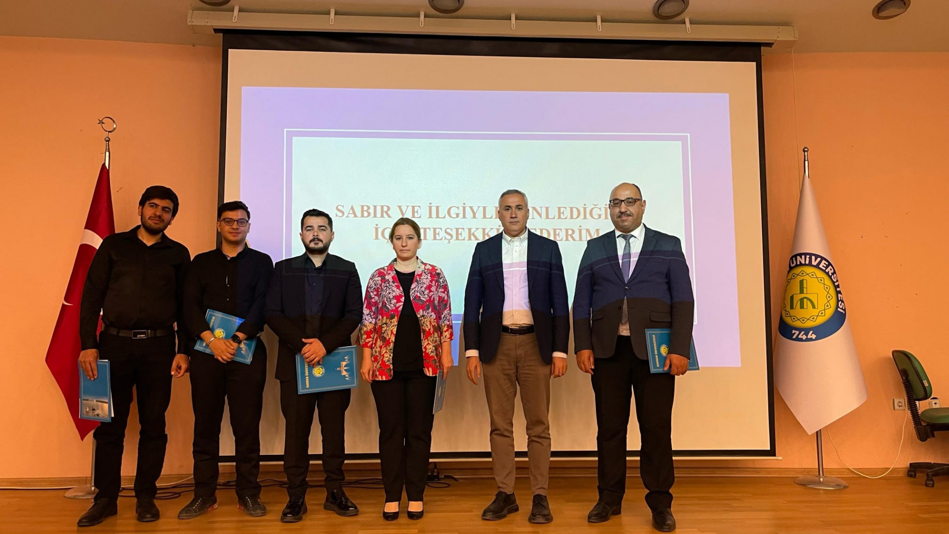 Törenin sonunda, katkılarından dolayı Doç. Dr. Gülşah ESER ile Öğr. Gör. Dr. Abidin ÖZPEK ve öğrencilerine, Dekanımız Prof. Dr. Ahmet İLYAS tarafından Teşekkür Belgesi takdim edildi.
