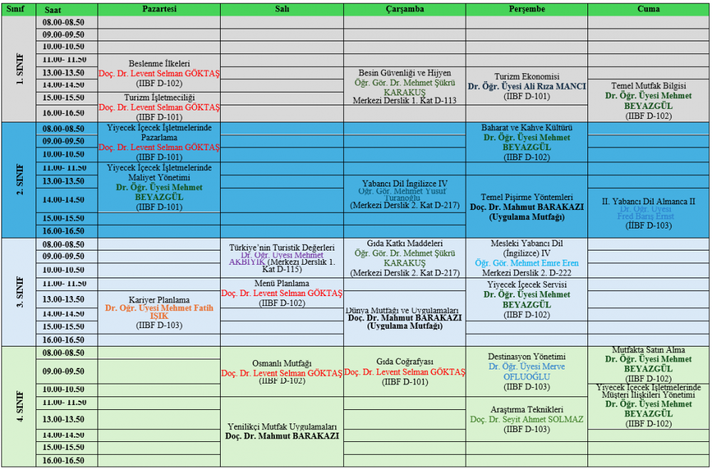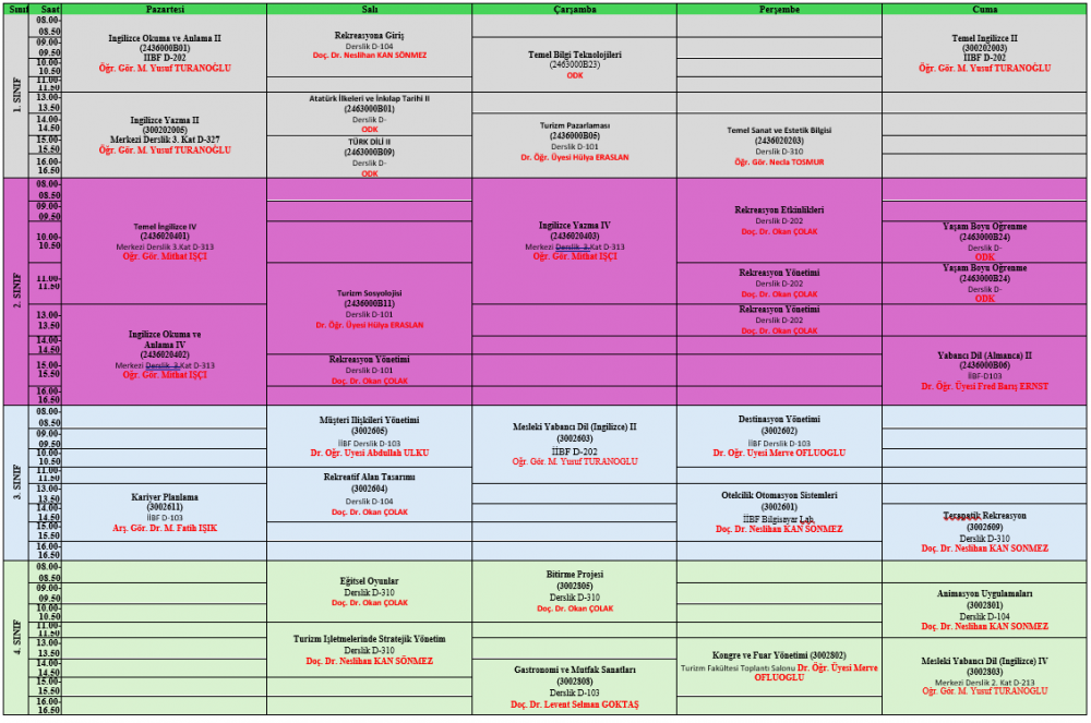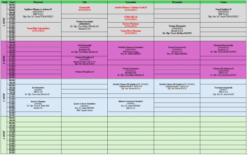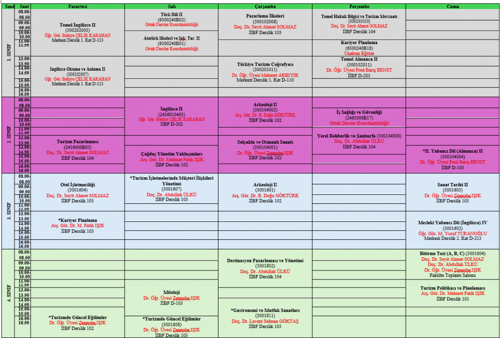 2025-2026 EĞİTİM-ÖĞRETİM YILI BAHAR DÖNEMİ DERS PROGRAMI