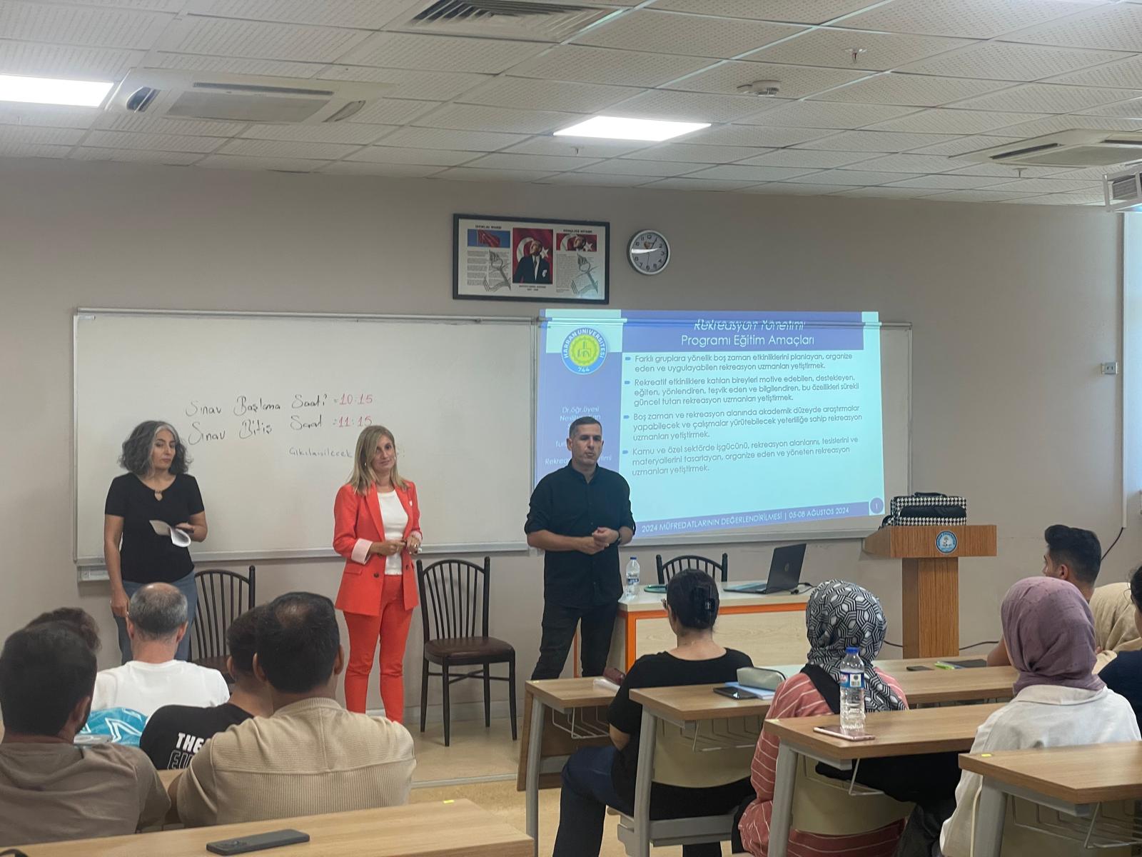 30.09.2024 Pazartesi günü saat 11:00’da, Turizm Fakültesi Dekanı Prof. Dr. Mahmut Nedim BAYUK ve Rekreasyon Yönetimi Bölümü öğretim üyeleri Doç. Dr. Okan ÇOLAK, Doç. Dr. Neslihan KAN SÖNMEZ ve Öğr. Gör. Dr. Sultan BELLİ'nin katılımıyla, Rekreasyon Yönetimi Bölümü 1. sınıf öğrencilerine yönelik oryantasyon etkinliği gerçekleştirilmiştir. Etkinlikte, bölümün akademik yapısı, ders içerikleri, uygulamalı eğitim olanakları ve kariyer fırsatlarına dair bilgilendirme yapılmış; öğrencilerin soruları yanıtlanmıştır. Ayrıca, üniversite yaşamının sunduğu sosyal ve kültürel etkinliklerin, mesleki ve kişisel gelişim açısından önemi vurgulanmıştır. Düzenlenen oryantasyon, öğrencilerin üniversite hayatına bilinçli bir başlangıç yapmalarını sağlamayı amaçlamaktadır.