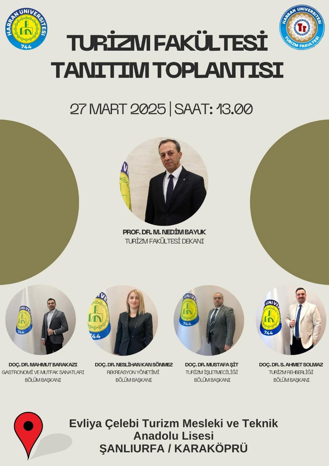 Harran Üniversitesi Turizm Fakültesi Bölüm Başkanları Evliya Çelebi Turizm Mesleki ve Teknik Anadolu Lisesi öğrencileri ile bir araya gelerek bölümleri hakkında sunum gerçekleştirdiler.