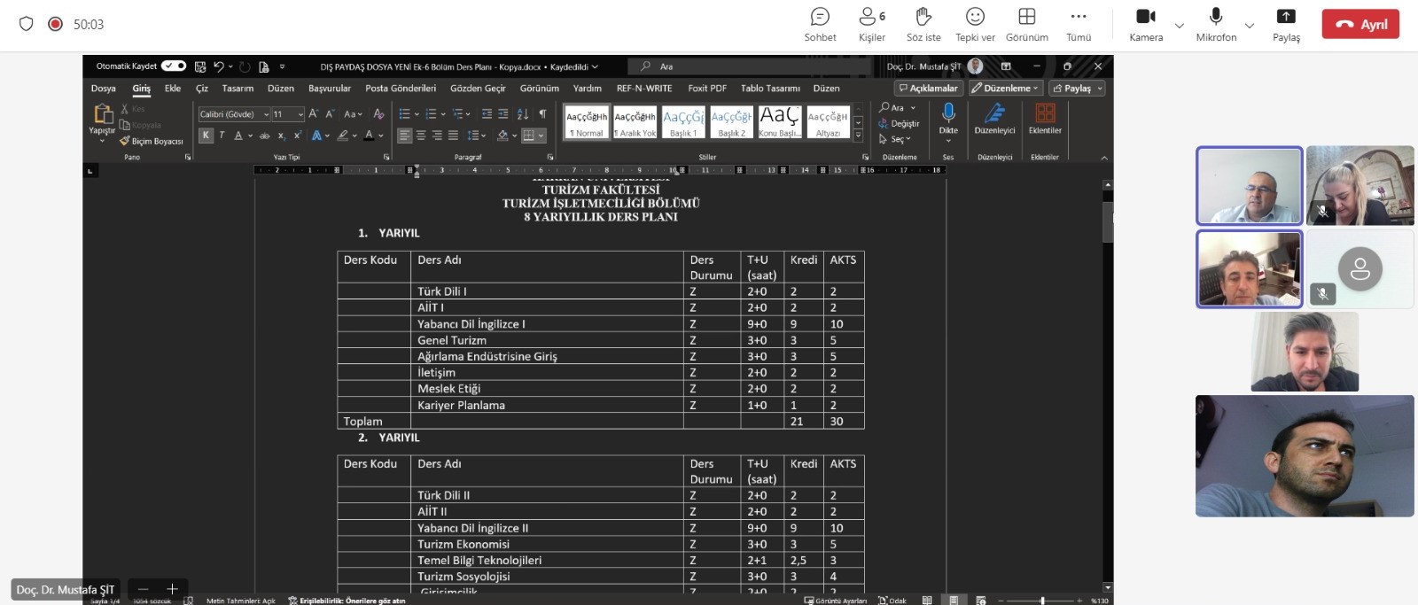 Turizm İşletmeciliği Bölümü Akreditasyon Çalışmaları- İç Paydaş Toplantısı