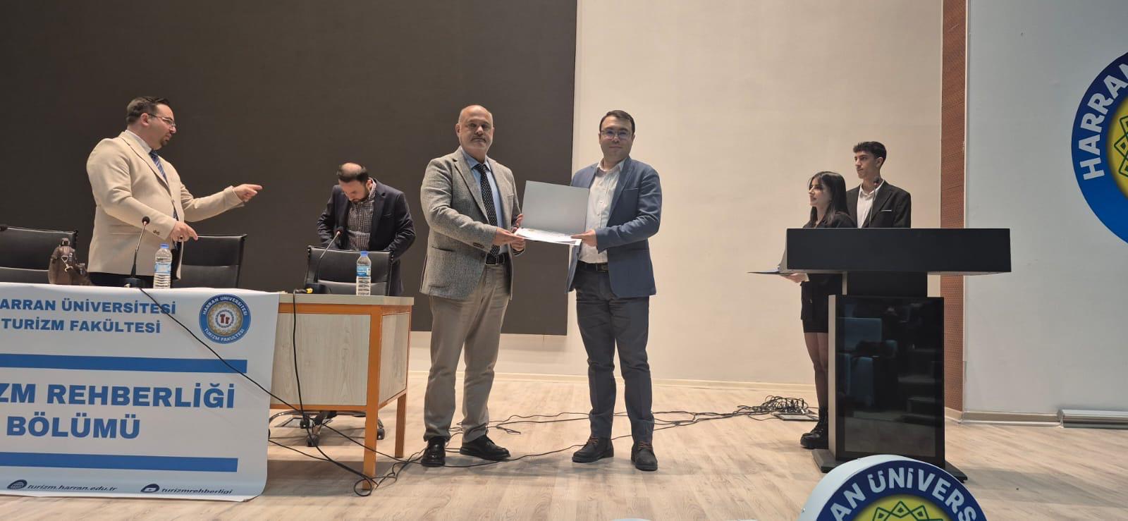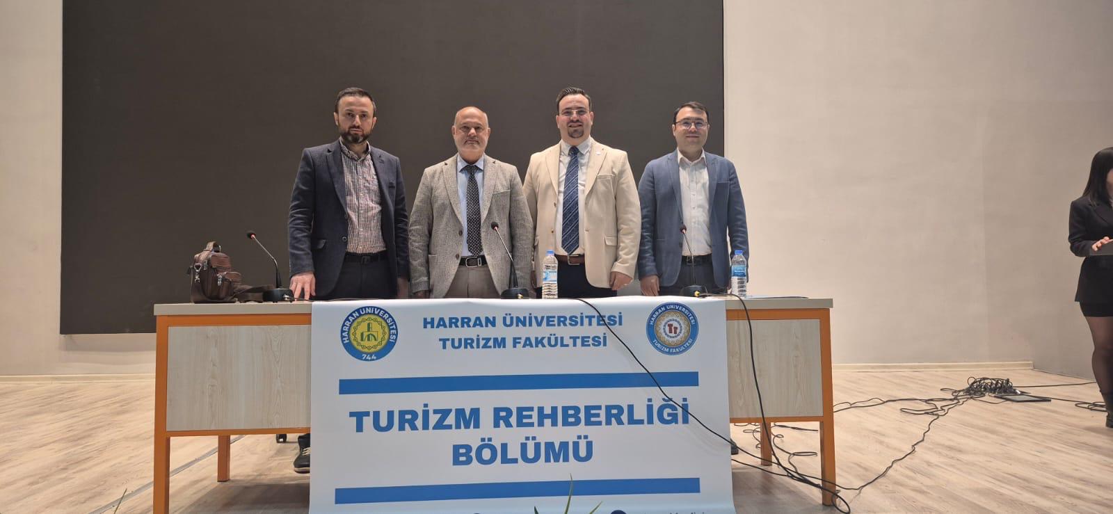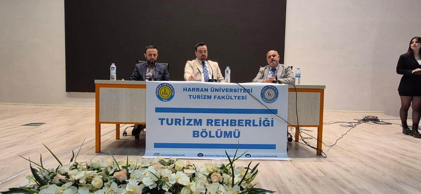 Fakültemiz Turizm Rehberliği Bölümü’nde “Dünya Turist Rehberleri Günü” kapsamında “Bir Yol Bin Hikâye: Rehberlikte Tecrübeler ve İlhamlar” adlı söyleşi etkinliği gerçekleştirildi. Moderatörlüğünü Turizm Rehberliği Bölüm Başkanı Doç. Dr. Seyit Ahmet Solmaz’ın yaptığı söyleşide ŞURO Yönetim Kurulu Başkanı Müslüm AKKAY ile Akademisyen-Turist Rehberi ve fakültemiz öğretim üyesi Dr. Abdullah ÜLKÜ konuşmacı olarak yer aldı. Törenin açılış konuşmasını yapan fakültemiz dekan yardımcısı Dr. Öğr. Üyesi Levent Selman GÖKTAŞ, turist rehberlerinin turizm sektörünün en önemli aktörleri olarak yalnızca mekanları tanıtan kişiler olmadığını, kültürleri buluşturan, tarihi ve doğal mirası geleceğe aktaran profesyoneller olduğunu dile getirdi. Turist rehberinin anlatımıyla bir taşı bazen bir anıta, bir sokağı ise hikâyeye dönüştürebildiğini aktardı.
