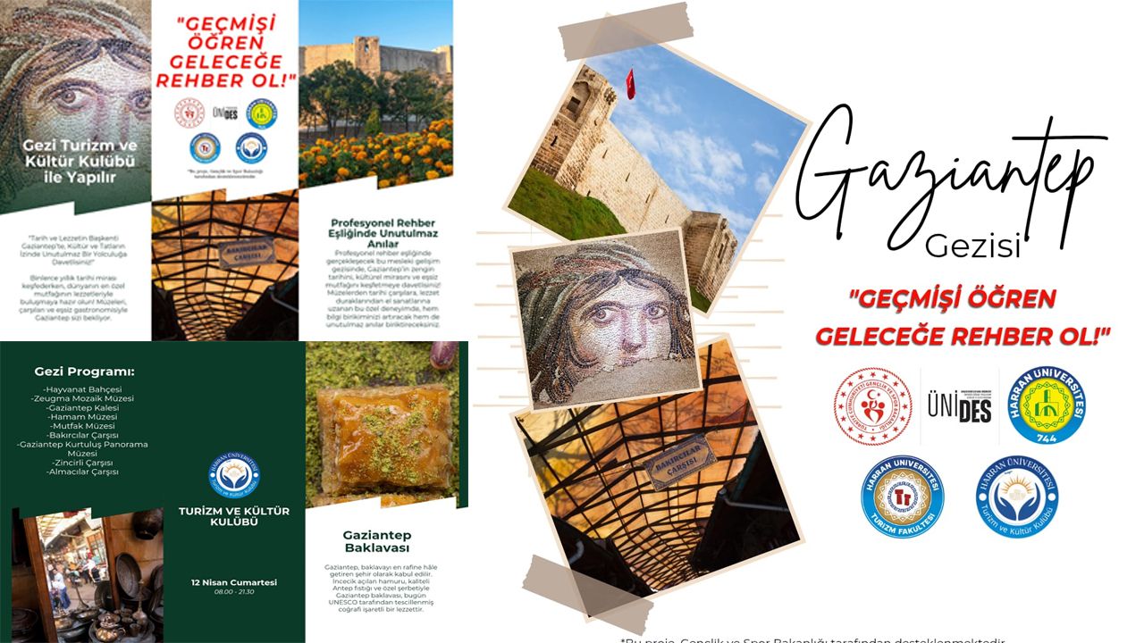Harran Üniversitesi Turizm Rehberliği Bölümü Turizm ve Kültür Kulübünün Turizm Rehberliği öğrencilerinin mesleki gelişimlerini desteklemek, kültürel miras bilincini artırmak, aynı zamanda sektörel deneyim kazanmalarını sağlamak amacıyla hazırladığı "Geçmişi Öğren, Geleceğe Rehber Ol!" adlı teknik gezi projesi, Gençlik ve Spor Bakanlığının ÜNİDES (Üniversite Öğrenci Kulüplerini Destekleme Programı) projesi kapsamında desteklenmeye değer görüldü.