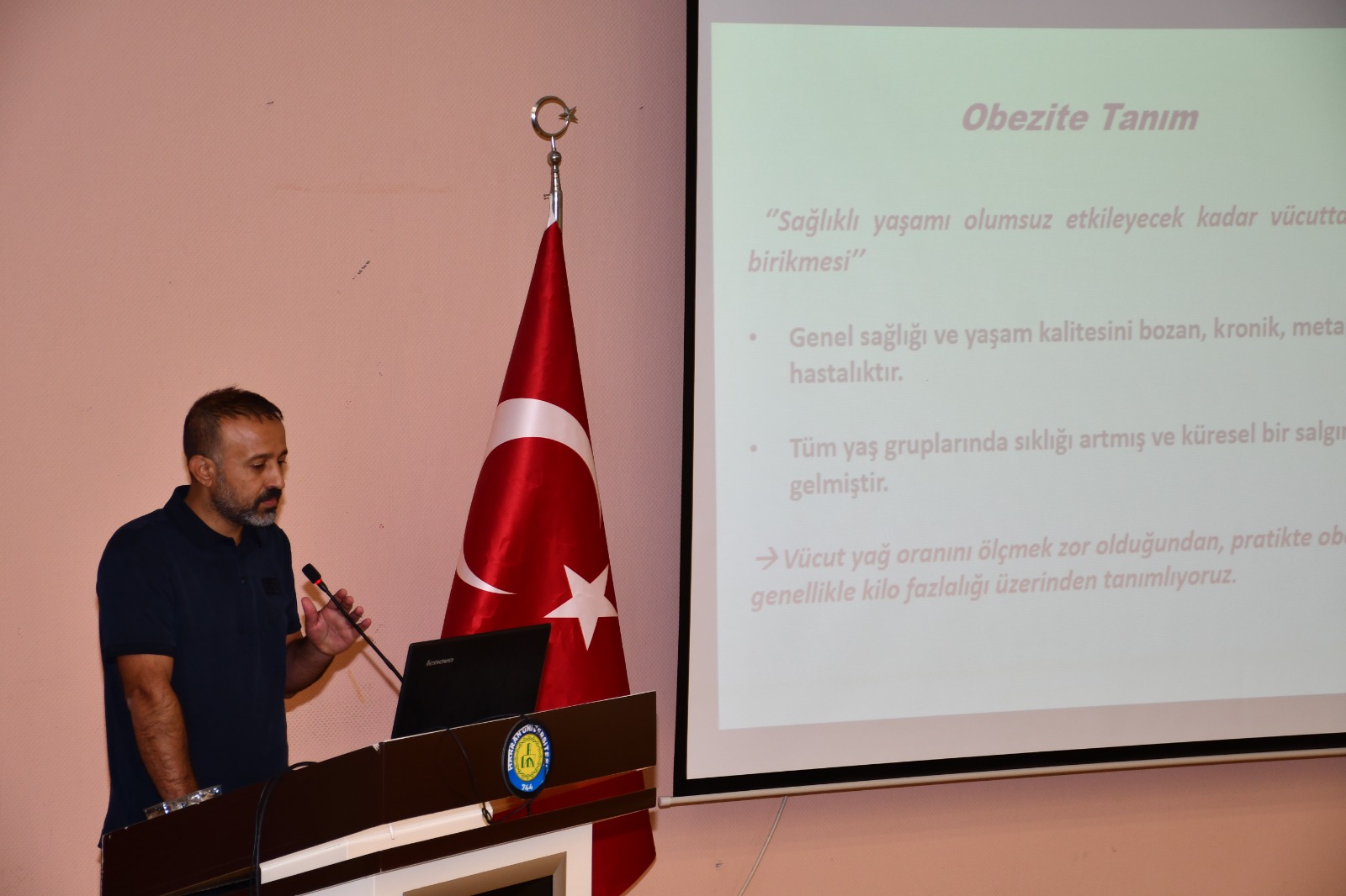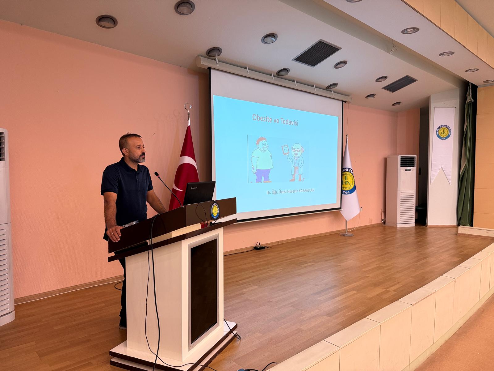 Başkanlığımızca; Üniversitemiz personeline 30.09.2025 tarihinde Fen Edebiyat Fakültesi Amfi B' de 2025 yılı Hizmet İçi Eğitim Programı kapsamında Üniversitemiz Tıp Fakültesi Öğretim Üyesi Dr.Öğr.Üyesi Hüseyin KARAASLAN tarafından "Obezite Sorunu" konulu hizmet içi eğitim verilmiştir.