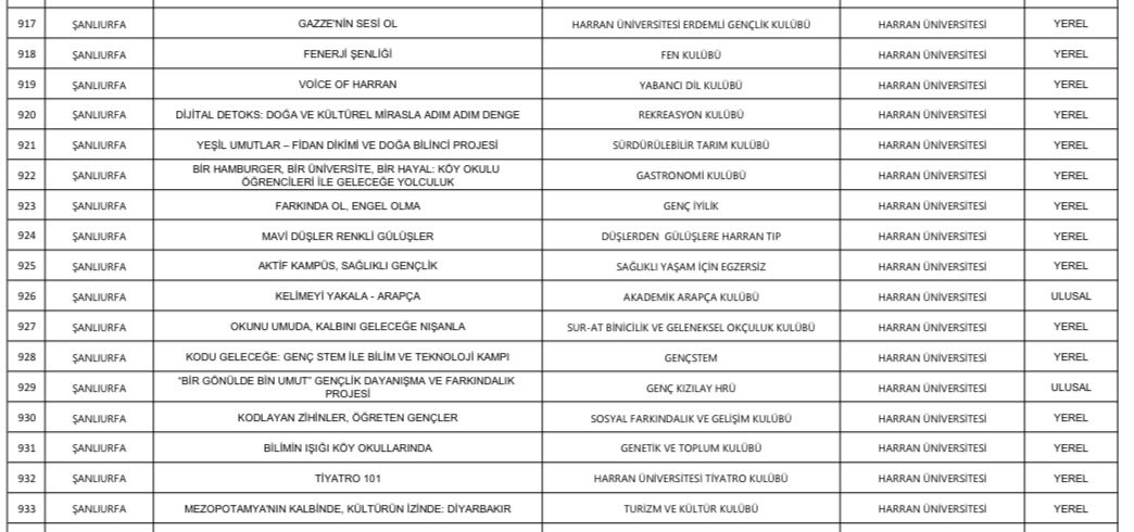 Harran Üniversitesi Sağlık, Kültür ve Spor Daire Başkanlığına bağlı öğrenci kulüplerimiz, Yükseköğretim Kurulu tarafından desteklenen ÜNİDES (Üniversite Öğrencileri Destekleme Programı) projeleri kapsamında önemli bir başarıya imza atmıştır.