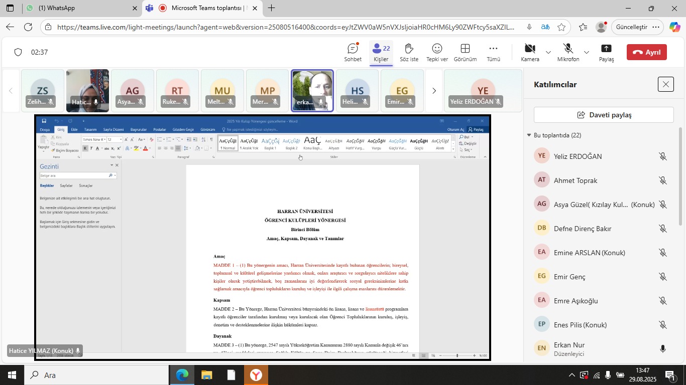 Toplantıya Daire Başkanımız Dr. Öğr. Üyesi Erkan Nur, Kültür Şube Müdürümüz Hatice Yılmaz, idari personelimiz ve tüm öğrenci kulüplerimizin temsilcileri katılım sağlamıştır. Görüşmelerde, öncelikle yönerge kapsamında Daire Başkanlığımız tarafından yürütülen çalışmalar aktarılmış, ardından kulüp temsilcilerinin talepleri, önerileri ve beklentileri değerlendirilmiştir.