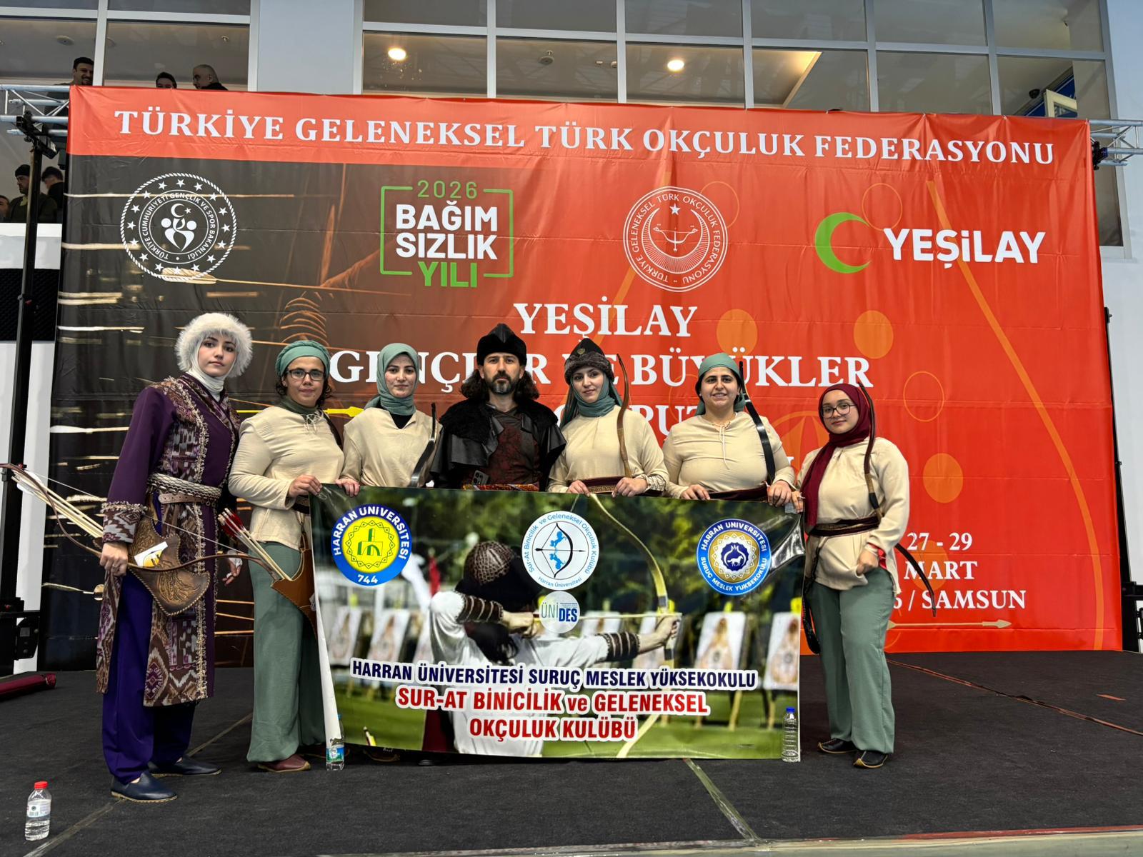 Üniversitemiz Sağlık Kültür ve Spor Daire Başkanlığı bünyesinde faaliyet gösteren Sur-At Binicilik ve Geleneksel Okçuluk Kulübü, 27–29 Mart 2026 tarihleri arasında Samsun’da düzenlenen Geleneksel Türk Okçuluğu Türkiye Şampiyonası’na katılım sağladı. Öğretim Görevlisi Serhan GÜNGÖR’ün kafile başkanlığında gerçekleştirilen organizasyonda kulüp sporcularımız üniversitemizi temsil etti. Geleneksel Türk okçuluğunun yaşatılması ve yaygınlaştırılması açısından büyük önem taşıyan şampiyonada öğrencilerimiz hem sportif hem de kültürel anlamda önemli bir deneyim elde etti. Üniversitemiz, misyonu doğrultusunda geleneksel sporların yaşatılması ve gelecek nesillere aktarılması amacıyla öğrencilerimizin bu alandaki faaliyetlerini desteklemeye devam etmektedir