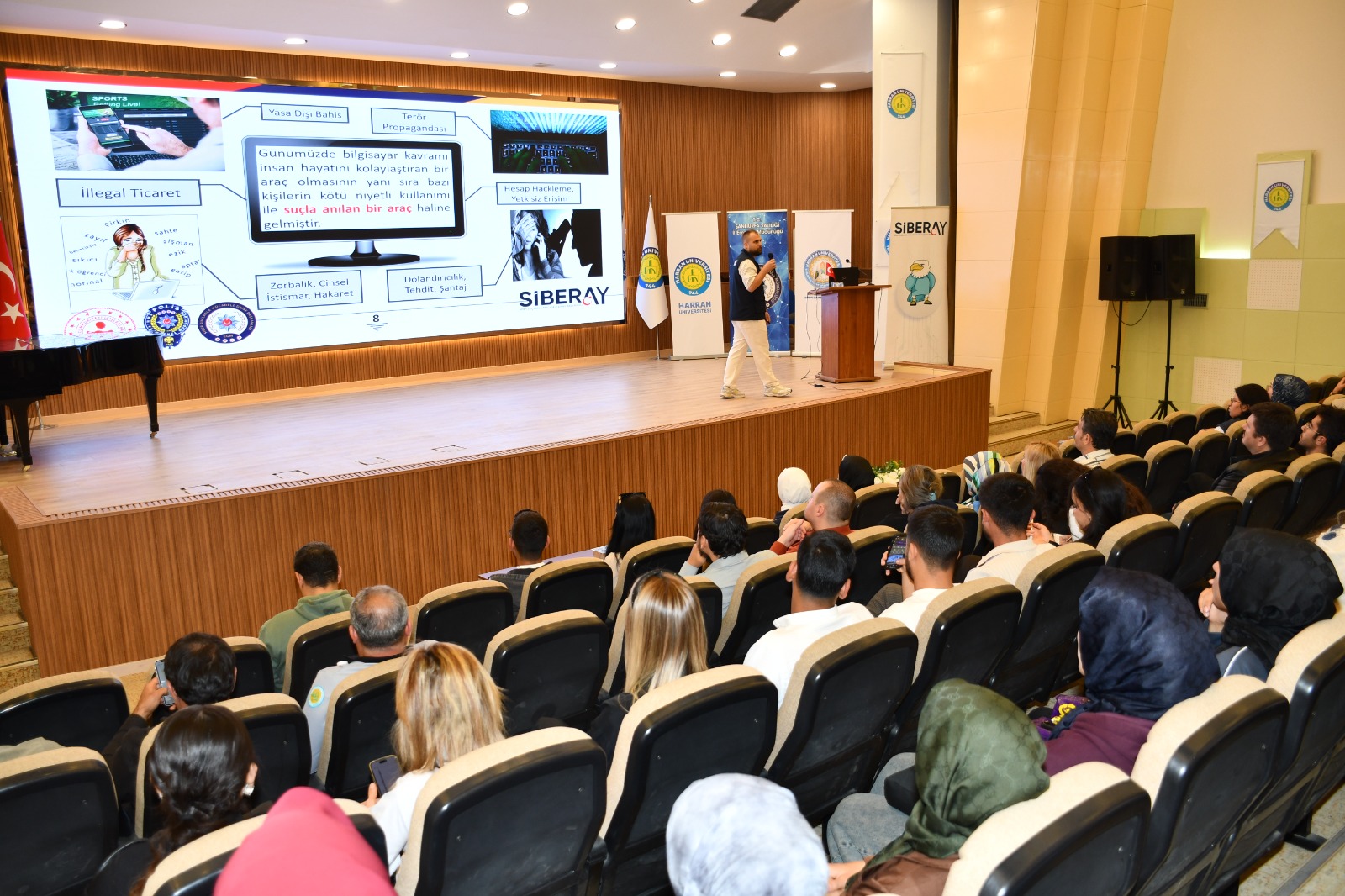Üniversitemiz akademik ve idari personeli ile öğrencilerine yönelik olarak, Şanlıurfa İl Emniyet Müdürlüğü Siber Suçlarla Mücadele Şube Müdürlüğü “Siber Suçlarla Mücadele Eğitimi” düzenlendi.