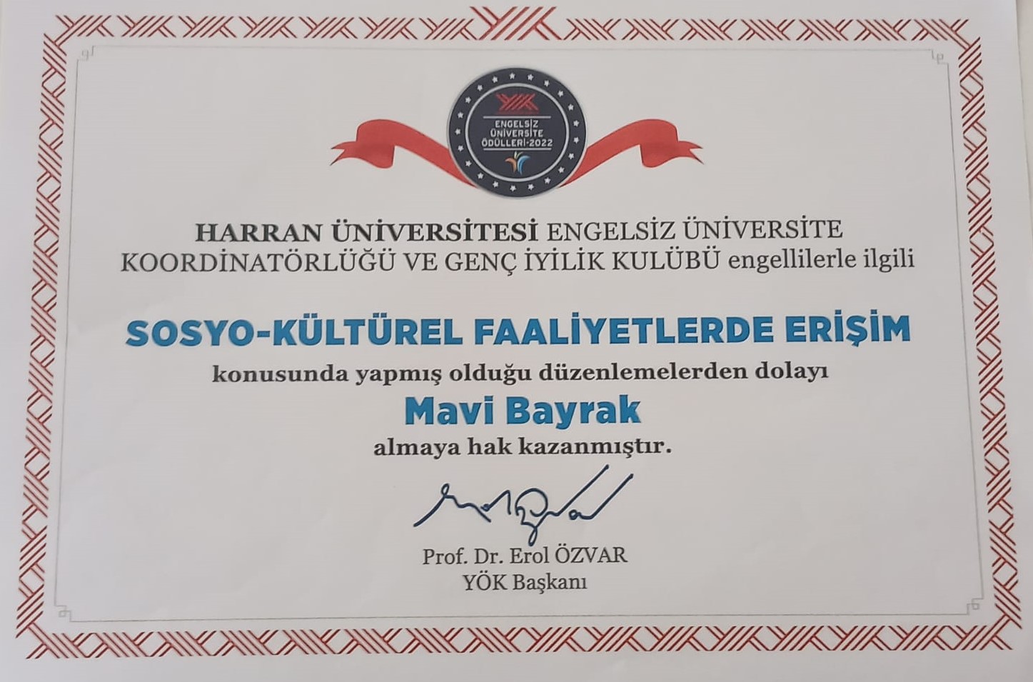 Sosyo-Kültürel Faaliyetlerde Erişilebilirlik (Mavi Bayrak) ve YÖK Erişilebilirlik Ödülü
