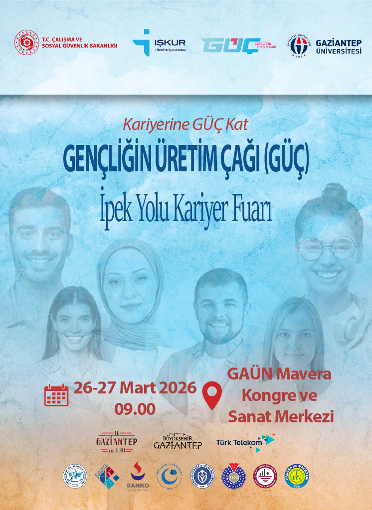 Gaziantep Üniversitesi ev sahipliğinde 26–27 Mart 2026 tarihlerinde düzenlenecek İpek Yolu Kariyer Fuarı, öğrencilerimizi sektörün önde gelen kurum ve kuruluşlarıyla buluşturuyor. 🤝