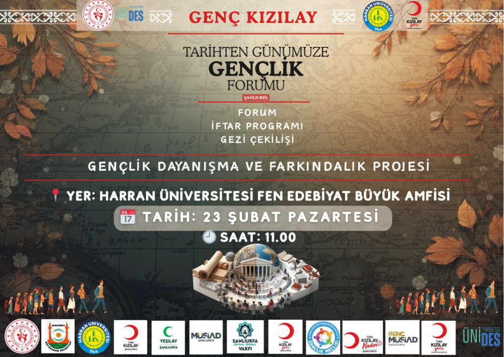 Müdürümüz Dr. Öğr. Üyesi Gürkan ÇETİN 23 Şubat 2026 tarihinde Gençlik Spor Bakanlığı destekleriyle Genç Kızılay Şanlıurfa koordinatörlüğünde ve Üniversitemiz ev sahipliğinde yapılacak olan "Tarihten Günümüze Gençlik Forumuna" konuşmacı olarak katılacaktır.