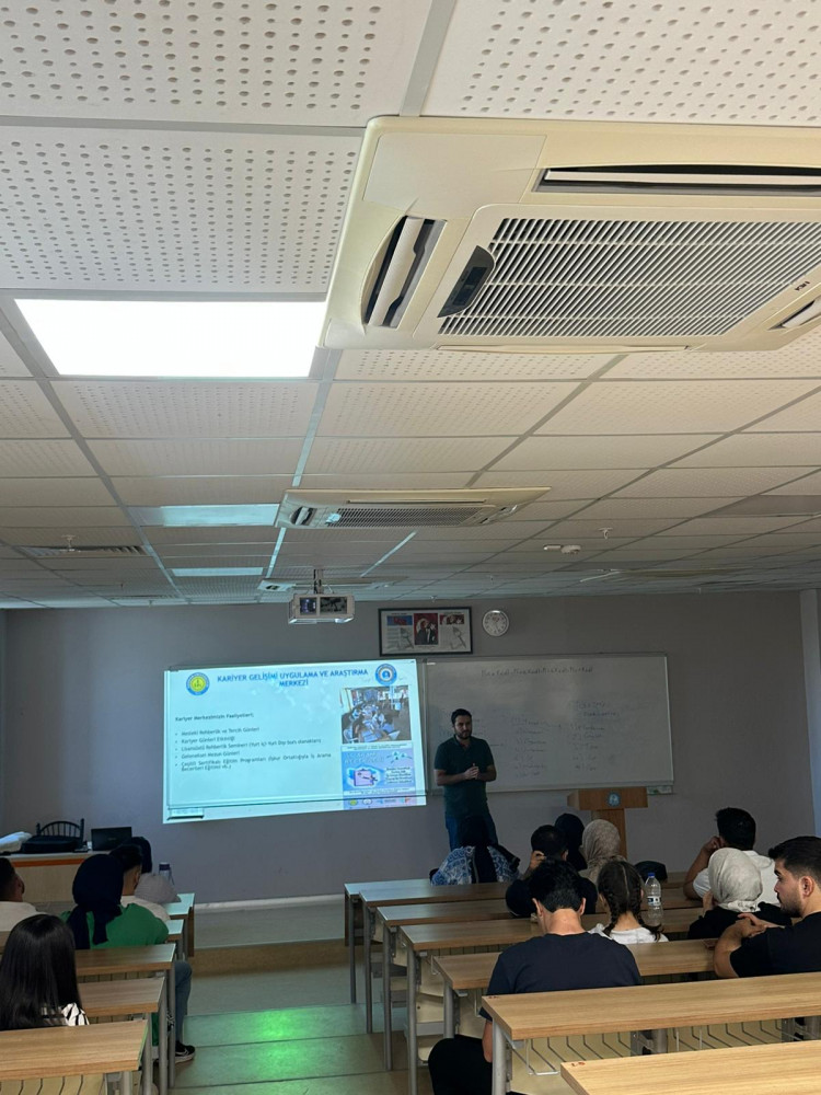 Kariyer Merkezi Müdürümüz Dr. Öğr. Üyesi Gürkan ÇETİN, İktisadi ve idari Bilimler Fakültesi İşletme Bölümü öğrencilerinin oryantasyon programında kariyer merkezini tanıtıtarak kariyer konulu bir seminer verdi. Seminer sonunda öğrencilerin sorularını cevapladı.