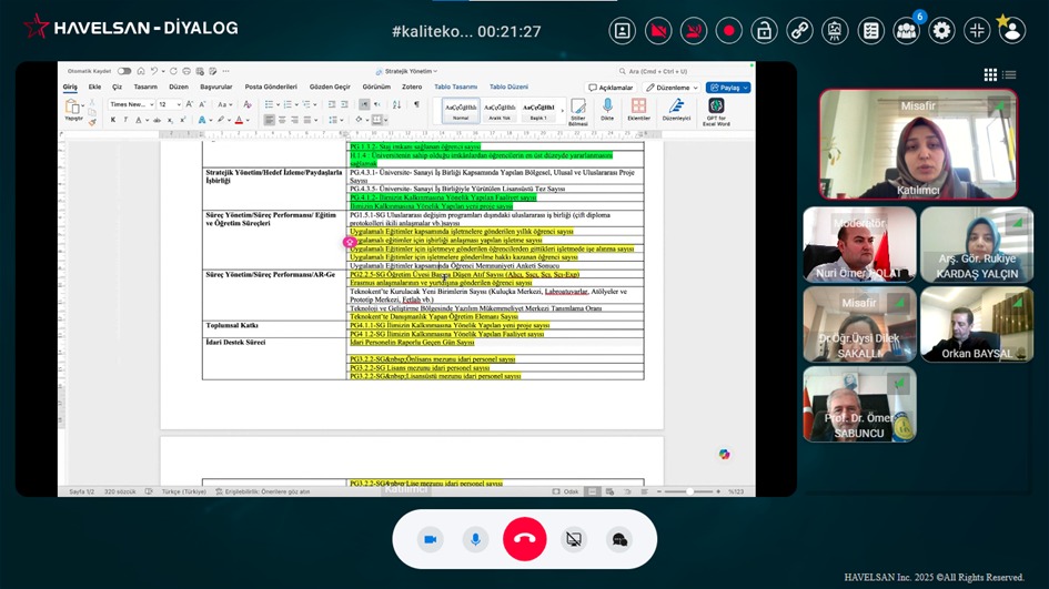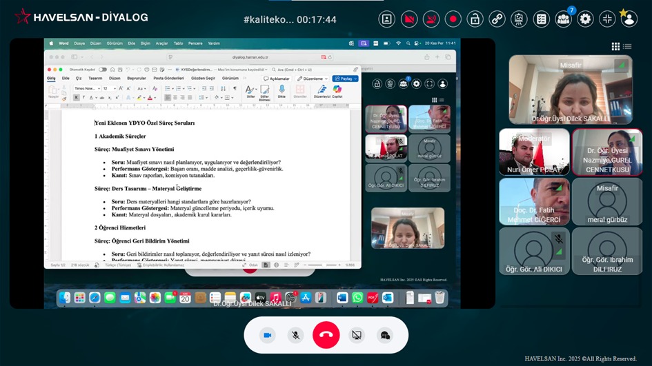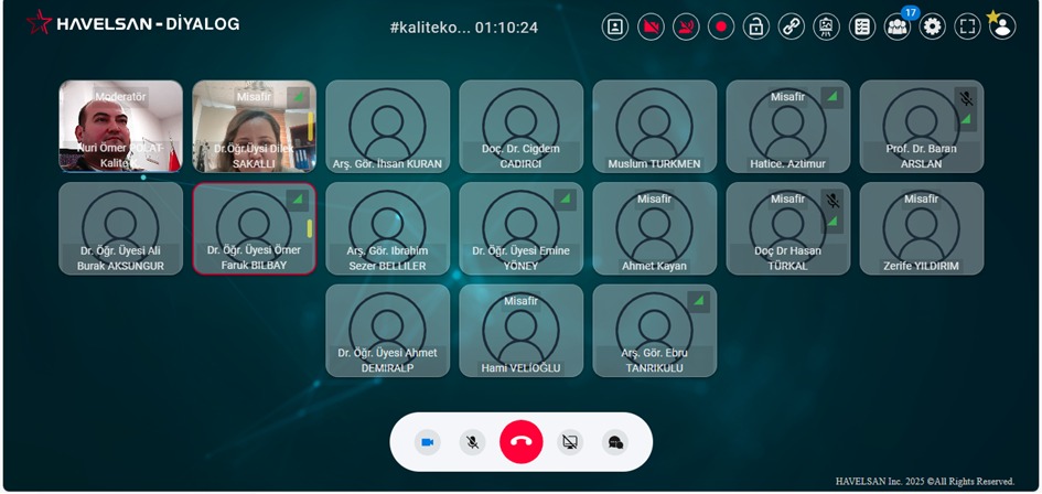 Kalite Koordinatörlüğünce tüm birimlerimizle 17–21 Kasım 2025 tarihleri arasında çevrim içi toplantılar gerçekleştirilmiş ve birimler tarafından hazırlanan süreç soruları kapsamlı şekilde değerlendirilmiştir