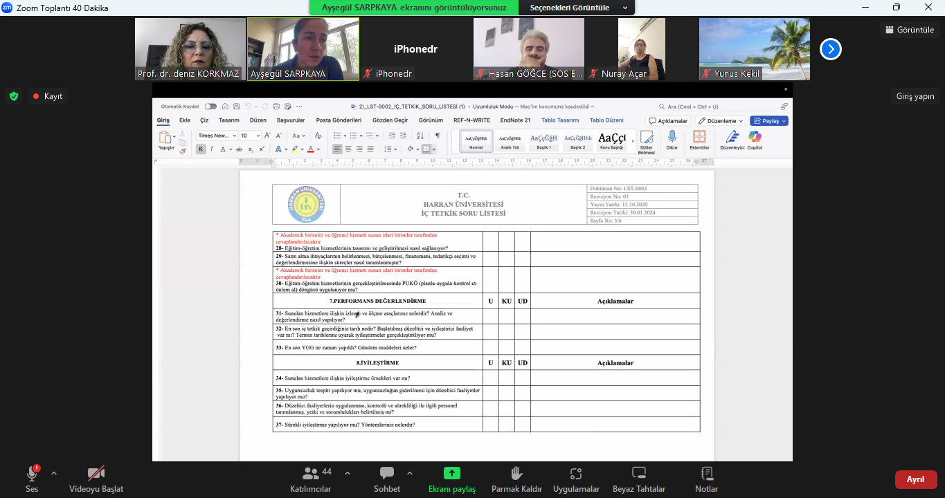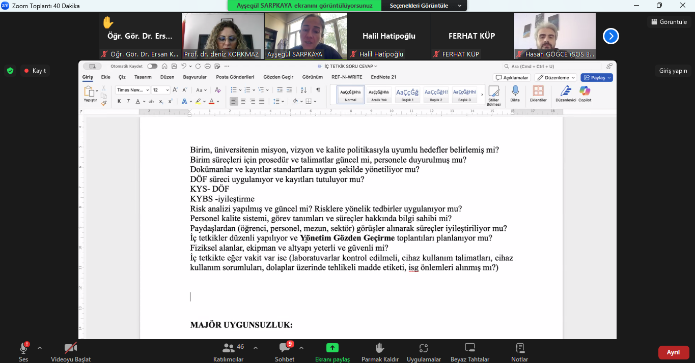 Toplantıda iç tetkik sürecine dair bilgilendirmeler yapıldı, sürecin nasıl ilerleyeceği hakkında detaylar paylaşıldı. Etkinlik soru-cevap şeklinde interaktif bir ortamda gerçekleştirildi. Katılımcılar, süreçle ilgili merak ettikleri konuları doğrudan yönelterek açıklayıcı bilgiler edindi.
